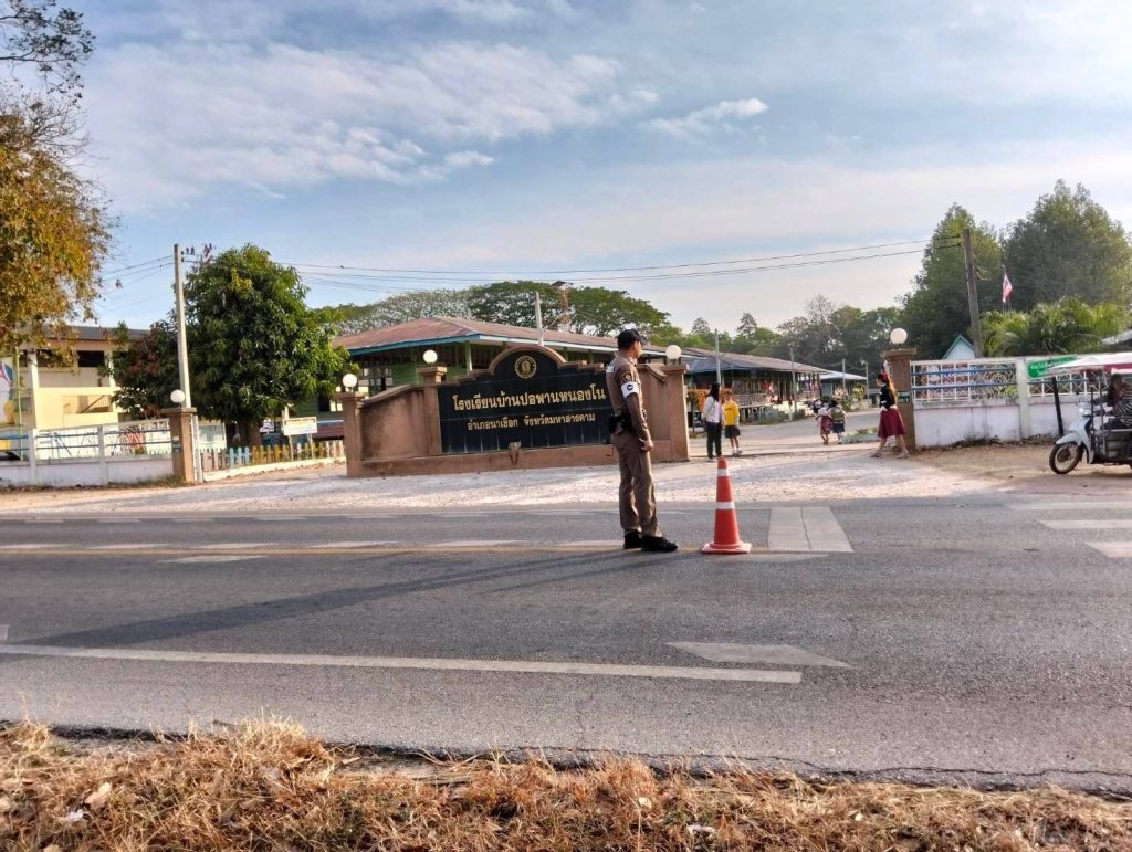 วันที่ 21 ม.ค.68 เวลา 07:40 น.สายตรวจจราจร ว.4 บริการด้านการจราจร หน้า รร. บ้านปอพานหนองโน ต.ปอพาน อ.นาเชือก จ.มหาสารคาม