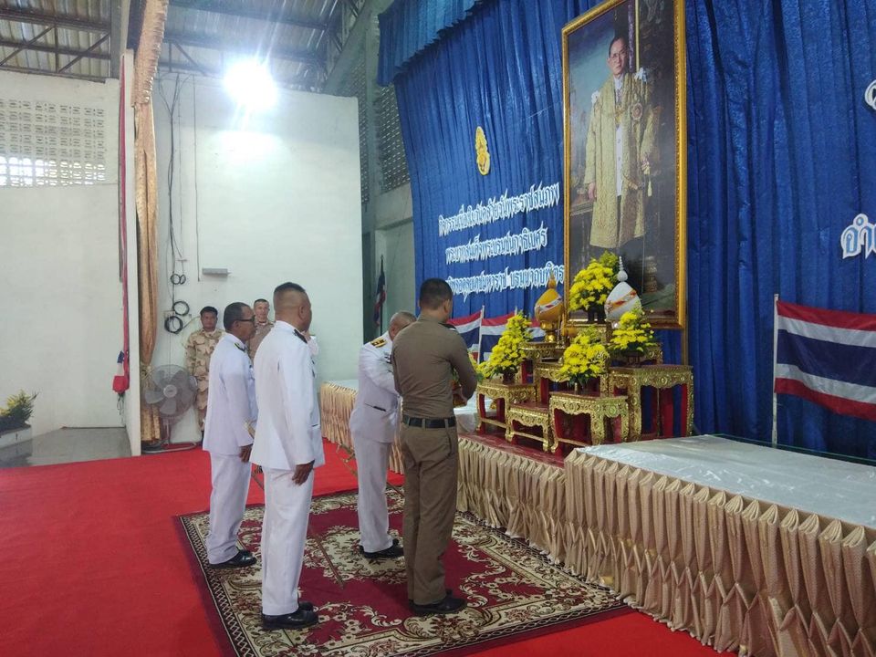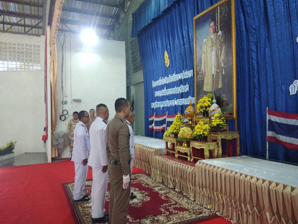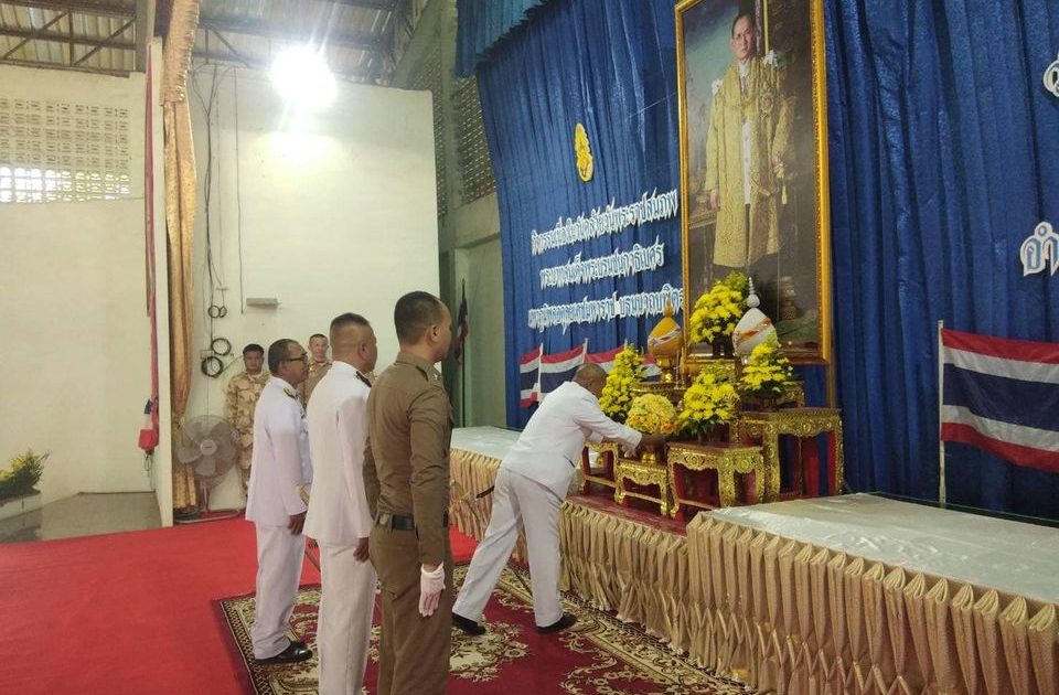 วันนี้ (5 ธ.ค.2566 ) เวลา 09.00 น.โดยการอำนวยการของ พ.ต.ท.วิษณุกร แก้วสีขาว สว.สภ.ปอพาน มอบหมายให้ ร.ต.ท.พยนต์ อุดทารุณ รอง สว.(ป.)ฯ ร.ต.ท.ไพรัตน์ ผาไธสง รอง สว.(ป.)ฯ ร.ต.ท.สมพงษ์ เอี่ยมศรี รอง สว.(ป.)ฯ จ.ส.ต.ฉัตรชัย จันวิเศษ ผบ.หมู่(ป.)ฯ ส.ต.อ.วิทวัฒน์ บุดดา ผบ.หมู่(ป.)ฯ ร่วมฝ่ายปกครอง อำเภอนาเชือก กำนันผู้ใหญ่บ้าน ประชาชน พร้อมด้วย กต.ตร.สภ.ปอพาน ร่วมพิธีวางพานพุ่มดอกไม้และพิธีถวายบังคม ณ หอประชุมอำเภอนาเชือก อ.นาเชือก จ.มหาสารคาม