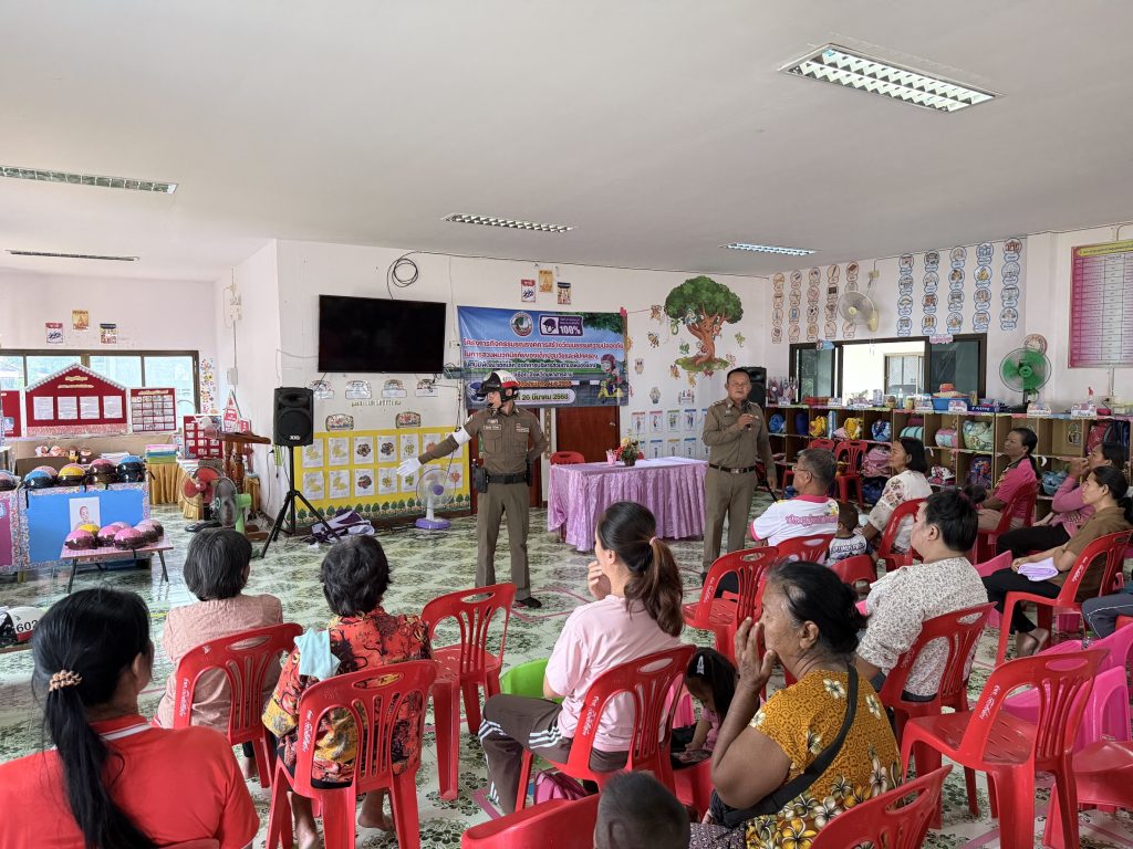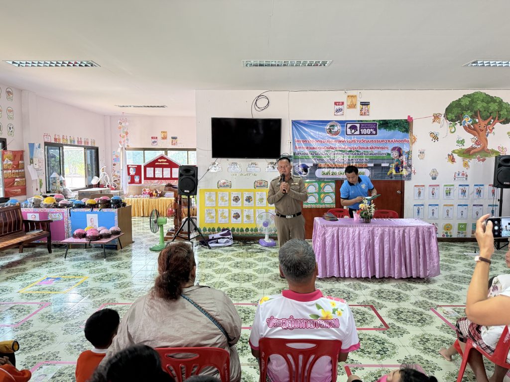 วันนี้ ( 26 มี.ค.68 ) เวลา 09.00 น. พ.ต.ท.วิสิทธิ์ นะราวัง สว.สภ.ปอพาน มอบหมายให้ ร.ต.อ.วิทยา ภูผานี รอง สวป.ฯ,จ.ส.ต.ฉัตรชัย จันวิเศษ ผบ.หมู่ฯ และ ส.ต.ท.รัฐภูมิ ศรีชาดา ผบ.หมู่ฯ เป็นวิทยากรให้ความรู้เกี่ยวกับ กฎหมายจราจรและความปลอดภัยในการสวมหมวกนิรภัย ในโครงการกิจกรรมรณรงค์การสร้างวัฒนธรรมความปลอดภัยในการสวมหมวกนิรภัยของเด็กประถมวัยและผู้ปกครอง ณ ศูนย์พัฒนาเด็กเล็ก องค์การบริหารส่วนตำบลหนองแดง ตำบลหนองแดง อ.นาเชือก จ.มหาสารคาม