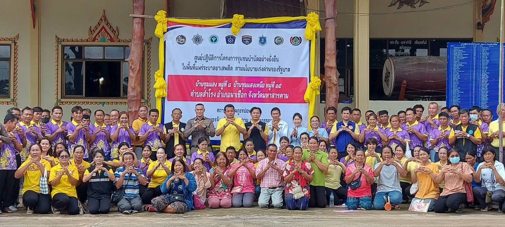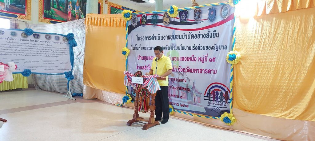 พ.ต.ท.วิสิทธิ์ นะราวัง สว.สภ.ปอพาน ,ร.ต.อ.วิทยา ภูผานี รอง สวป.ฯ พร้อมด้วยเจ้าหน้าที่ตำรวจชุดปฏิบัติการ “โครงการดำเนินงานชุมชนบำบัดยั่งยืน ในพื้นที่แพร่ระบาดยาเสพติด ตามนโยบายเร่งด่วนของรัฐบาล” ประจำปีงบประมาณ พ.ศ.2567 สถานีตำรวจภูธรปอพาน ได้ดำเนินการทำพิธีเปิดโครงการฯ ณ หมู่บ้านเป้าหมาย บ้านชุมแสง หมู่ 8 และบ้านชุมแสงเหนือ หมู่ 15 ต.สำโรง อ.นาเชือก จ.มหาสารคาม โดยใช้ศาลาการเปรียญวัดบ้านชุมแสง เป็นสถานที่เปิดโครงการฯ โดยมี พันจ่าโท ทองแดง ปินะเก นายอำเภอนาเชือก เป็นประธานในพิธี พร้อมด้วย พญ. ทักษิณา จิตเรืองไพโรจน์ ผอ.รพ.นาเลือก,นายสรายุทธ ญาติปราโมทย์ สาธารณสุขอำเภอ,นายอนิรุทธิ์ ปะวะโก นายก อบต.สำโรง,พ.จ.ท.เรืองศักดิ์ อันชำนาญ ผอ.รพ.สต.ตำบลสำโรง,นายอดิศักดิ์ ทบวงศรี กำนัน ตำบลสำโรง,นายธวัชชัย ไชยงาม ผญ.บ้านชุมแสง หมู่. 8 และนางสิรินนา ทบชิน ผญ.ชุมแสงเหนือ หมู่ 15 , ผู้นำชุมชน, ข้าราชการตำรวจ สภ.ปอพาน และชาวบ้านบ้านชุมแสง ร่วมพิธีเปิดโครงการฯ