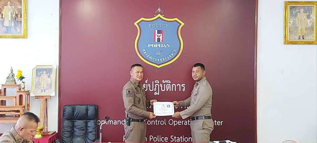 1.ได้รับนโยบายให้จัดทำหมู่บ้านชุมชนยั่งยืน ตาม ครม. ระยะเวลา 90 วัน ให้ สภ.เราเตรียมหมู่บ้านเป้าหมายไว้ 2.เยี่ยมผู้ป่วยจิตเวชให้เยี่ยมเฉพาะกลุ่มเฝ้าระวังเป็นหลัก 3.สิบเวรยาม เวลามีผู้ต้องหาให้ตรวจดูความเรียบร้อยในห้องควบคุม 4.ขอบคุณข้าราชตำรวจ สภ.ปอพานทุกนาย ที่ช่วยกันทำงานเรื่องตรวจยกระดับโรงพักเพื่อประชาชน และการฝึก 5.ได้มอบใบประกาศตำรวจต้นแบบแต่ละสายงานและมอบพระเสาร์ 5 ให้แก่ข้าราชการตำรวจ สภ.ปอพาน